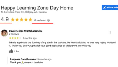 Happy Learning Zone became my go-to resource. It lists only approved, government-regulated dayhomes, ensuring quality and safety. The platform provides detailed profiles, including photos, tours, and staff information, which helped me make informed decisions. Knowing that every provider undergoes thorough background checks gave me peace of mind.