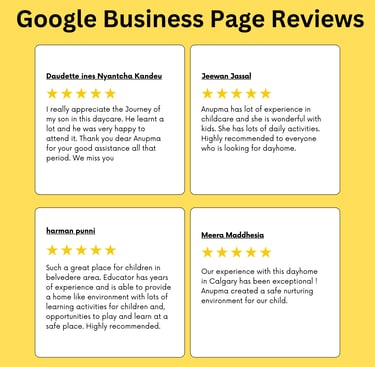 Experience peace of mind with our Calgary-based day home, backed by my 9 years of experience in quality childcare. As an Alberta Government-approved establishment, we combine affordability with trust and stringent regulations to ensure a safe and nurturing environment. Here, children thrive, and families flourish, knowing they're supported by a decade of dedicated care and expertise.